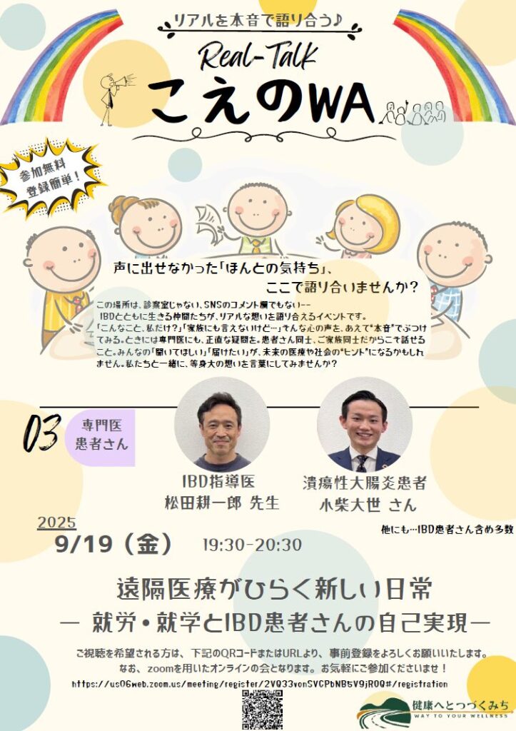 クローン病や潰瘍性大腸炎の当事者だけでなく、ご家族、IBD指導医・専門医、そして一般の方々も交えて、